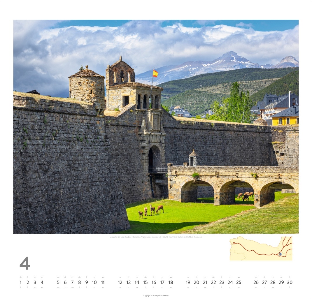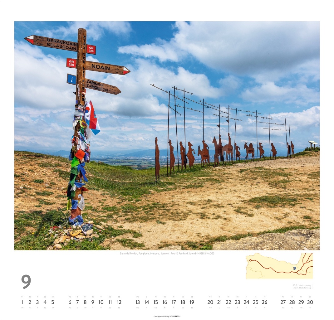 - Der berühmteste der europäischen Pilgerwege in einem Fotokalender im Querformat mit den Maßen 48 x 46 cm