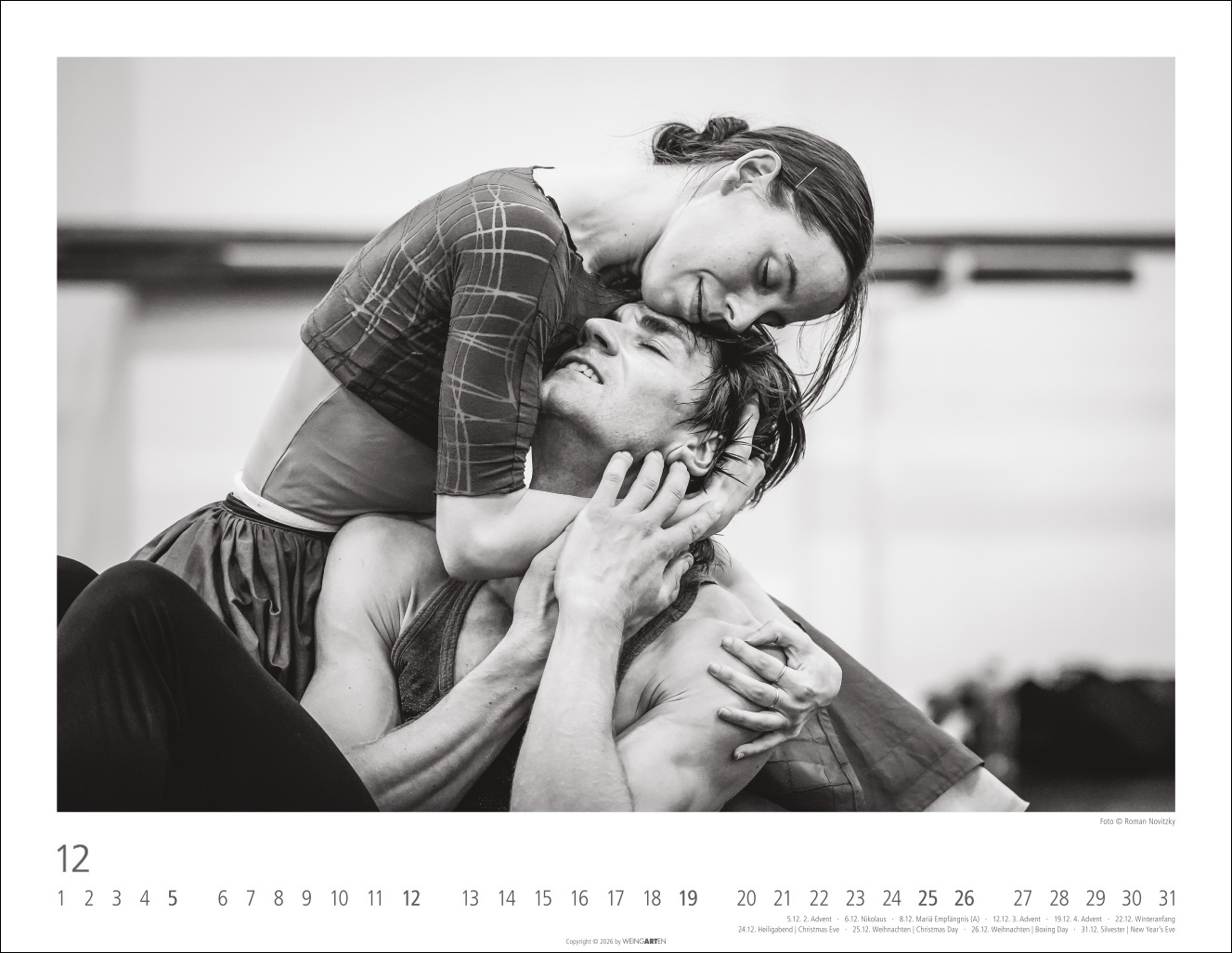 • Fotokalender mit ausdrucksstarken Tanz-Momenten in ästhetischen Schwarz-Weiß-Aufnahmen, festgehalten vom Balletttänzer und Choreografen Roman Novitzky