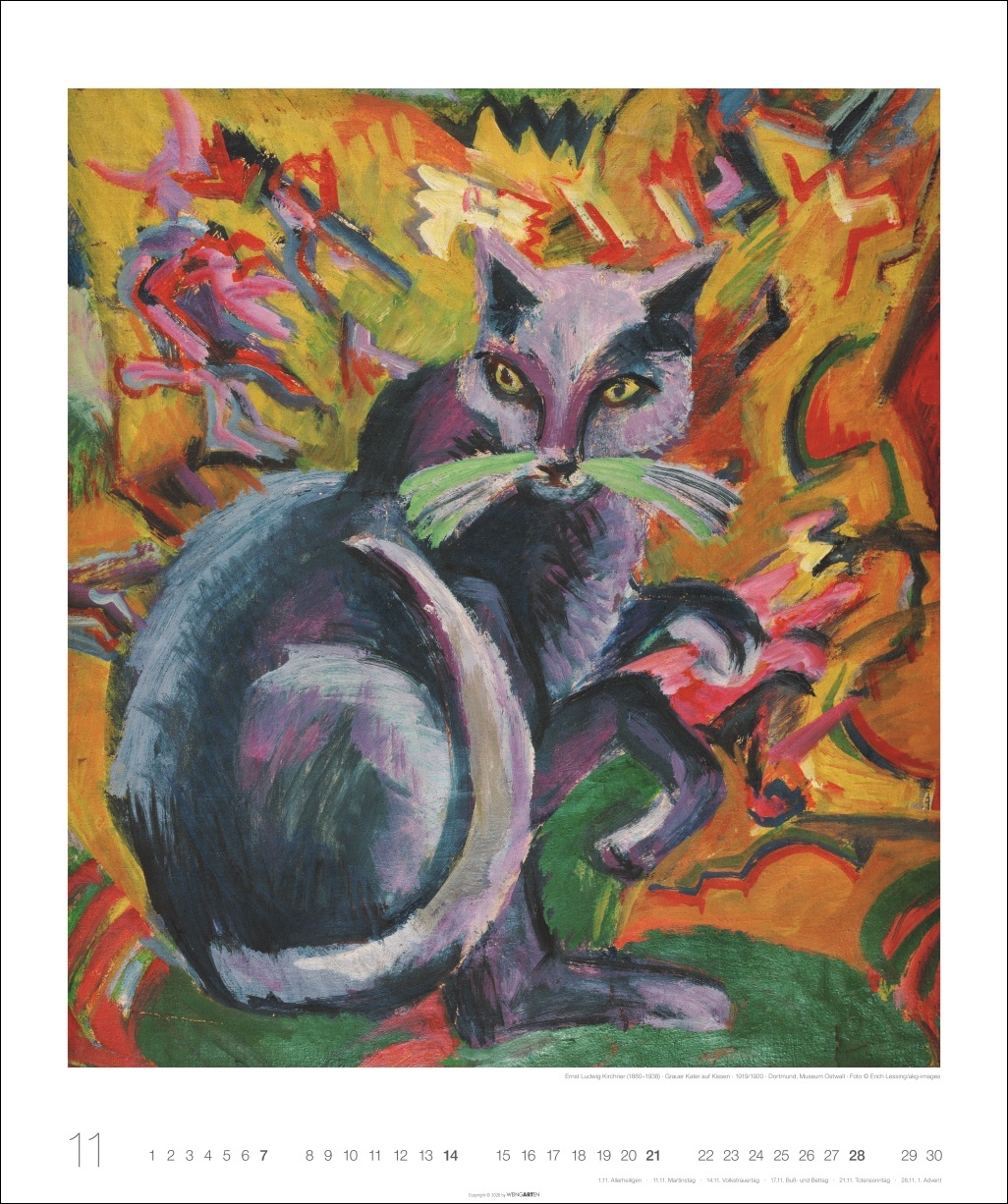 • Die neun Leben einer Katze: Bilder von Franz Marc, Suzanne Valadon oder Ernst Ludwig Kirchner & Co. zum Immer-Wieder-Bestaunen in einem Wandkalender XL