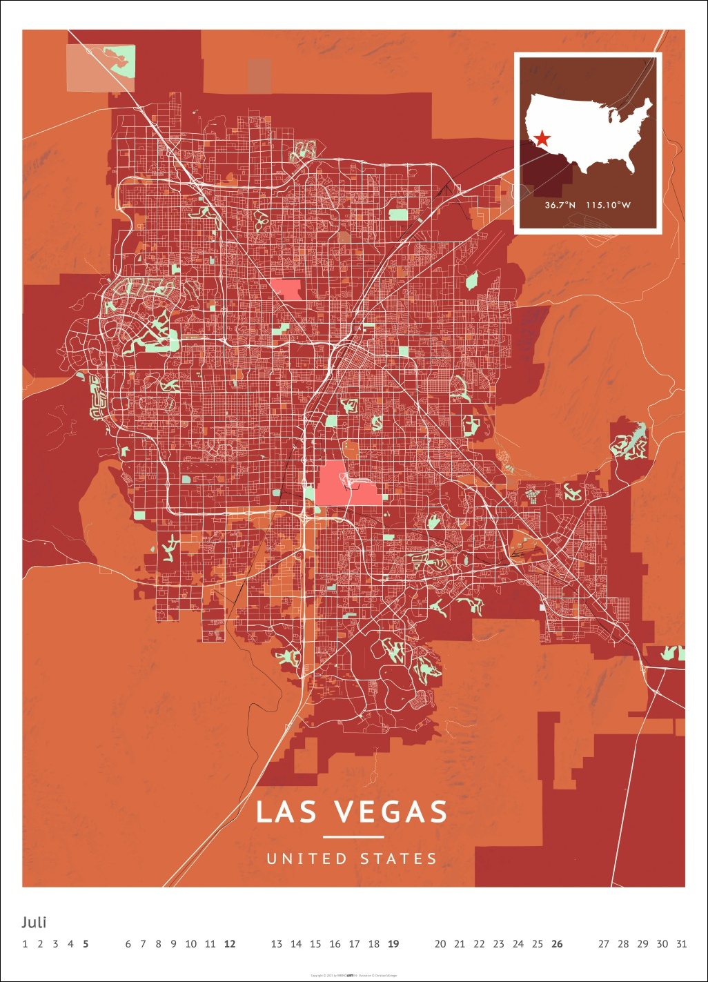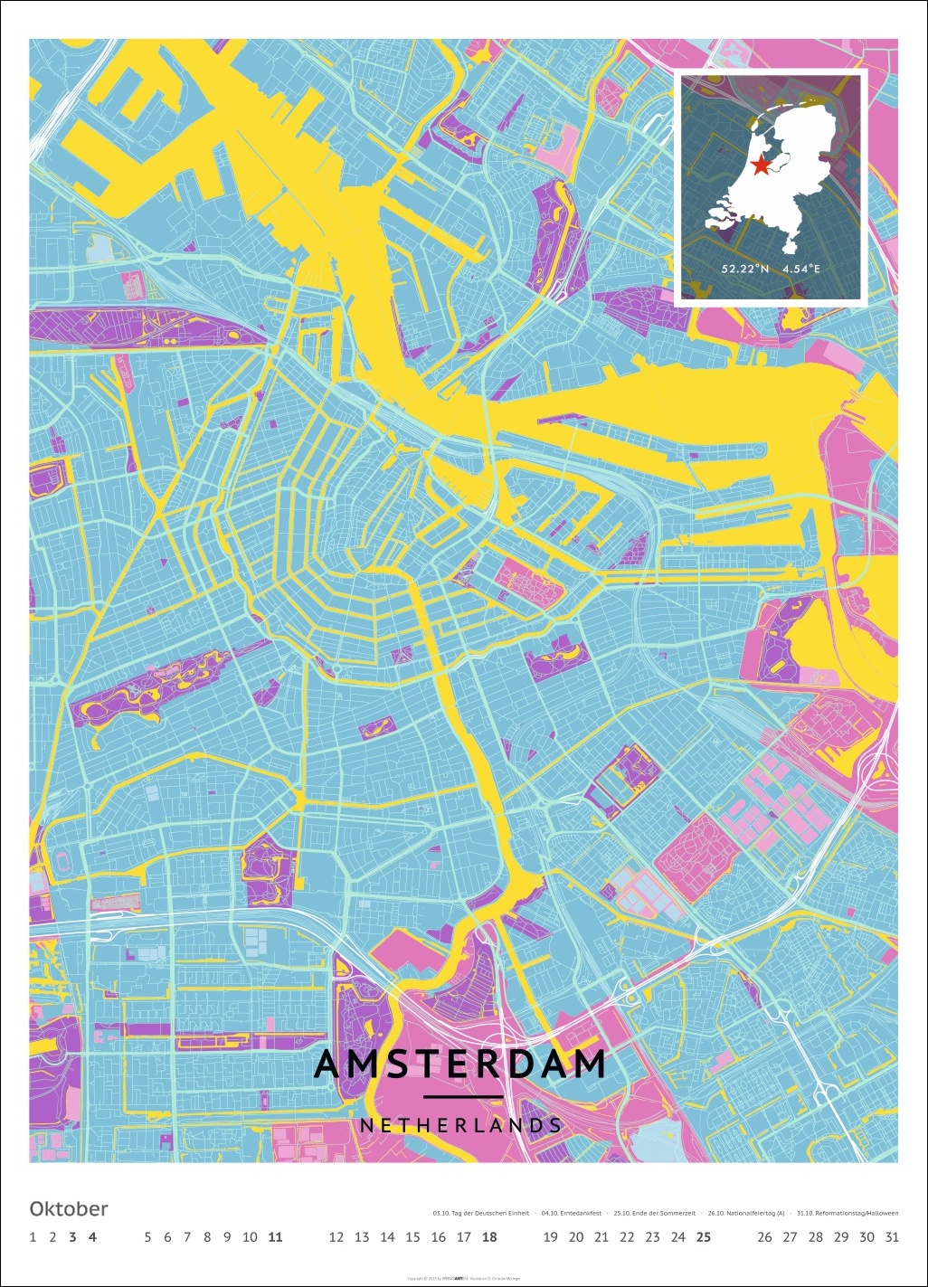 - Für alle Liebhaber von moderner Kartenkunst und ausgefallenen Interior-Ideen: Großer Wandkalender mit Farbkontrasten als Eye-Catcher