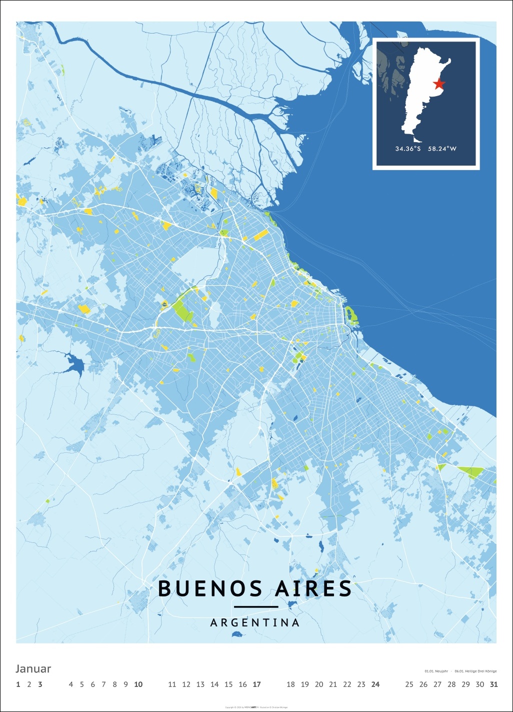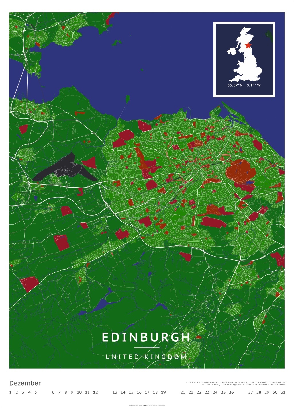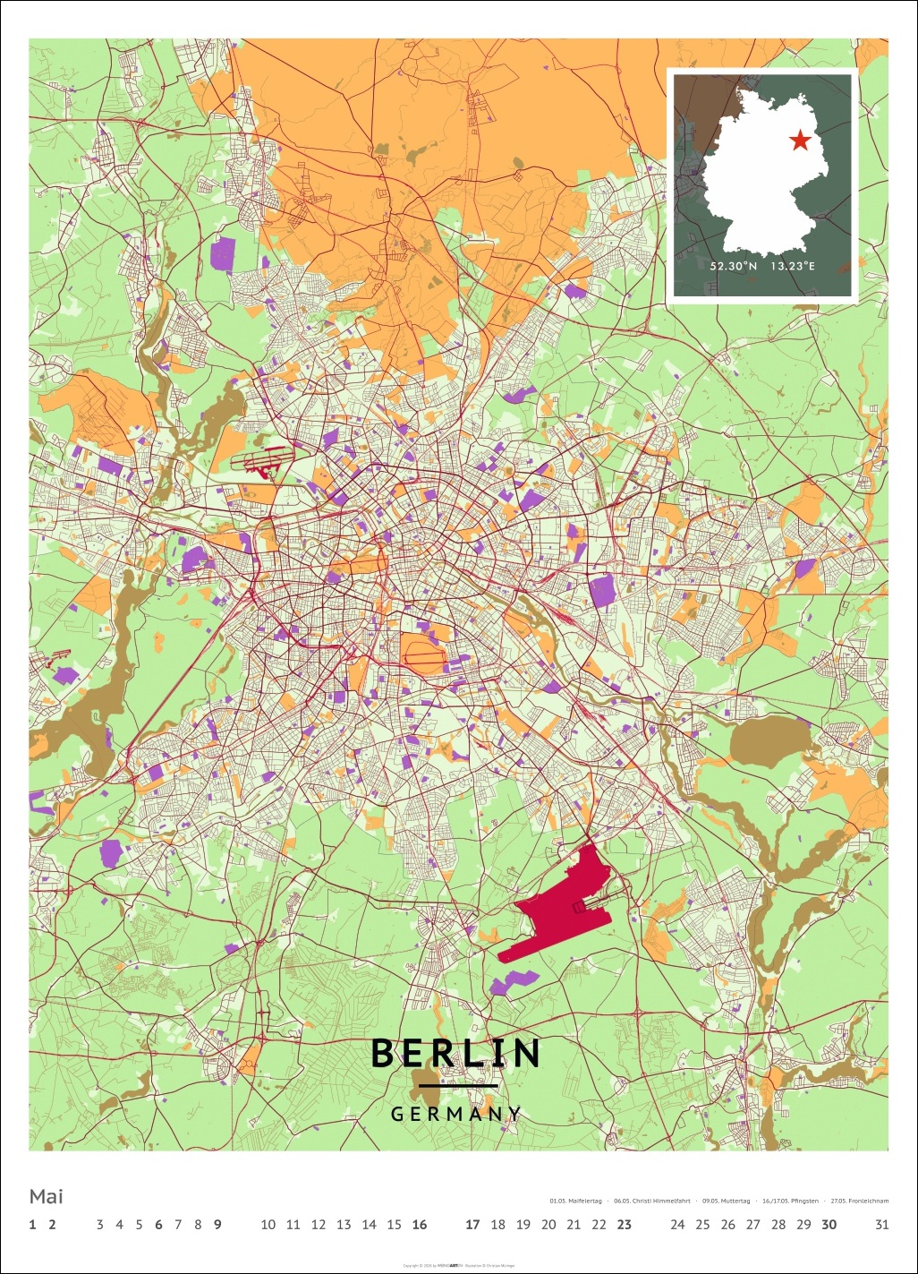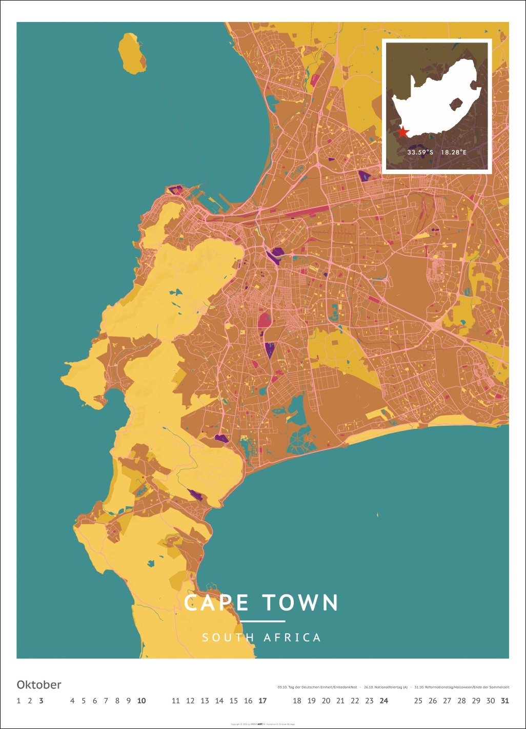 • Für alle Liebhaber von moderner Kartenkunst und ausgefallenen Interior-Ideen: Großer Wandkalender mit Farbkontrasten als Eye-Catcher