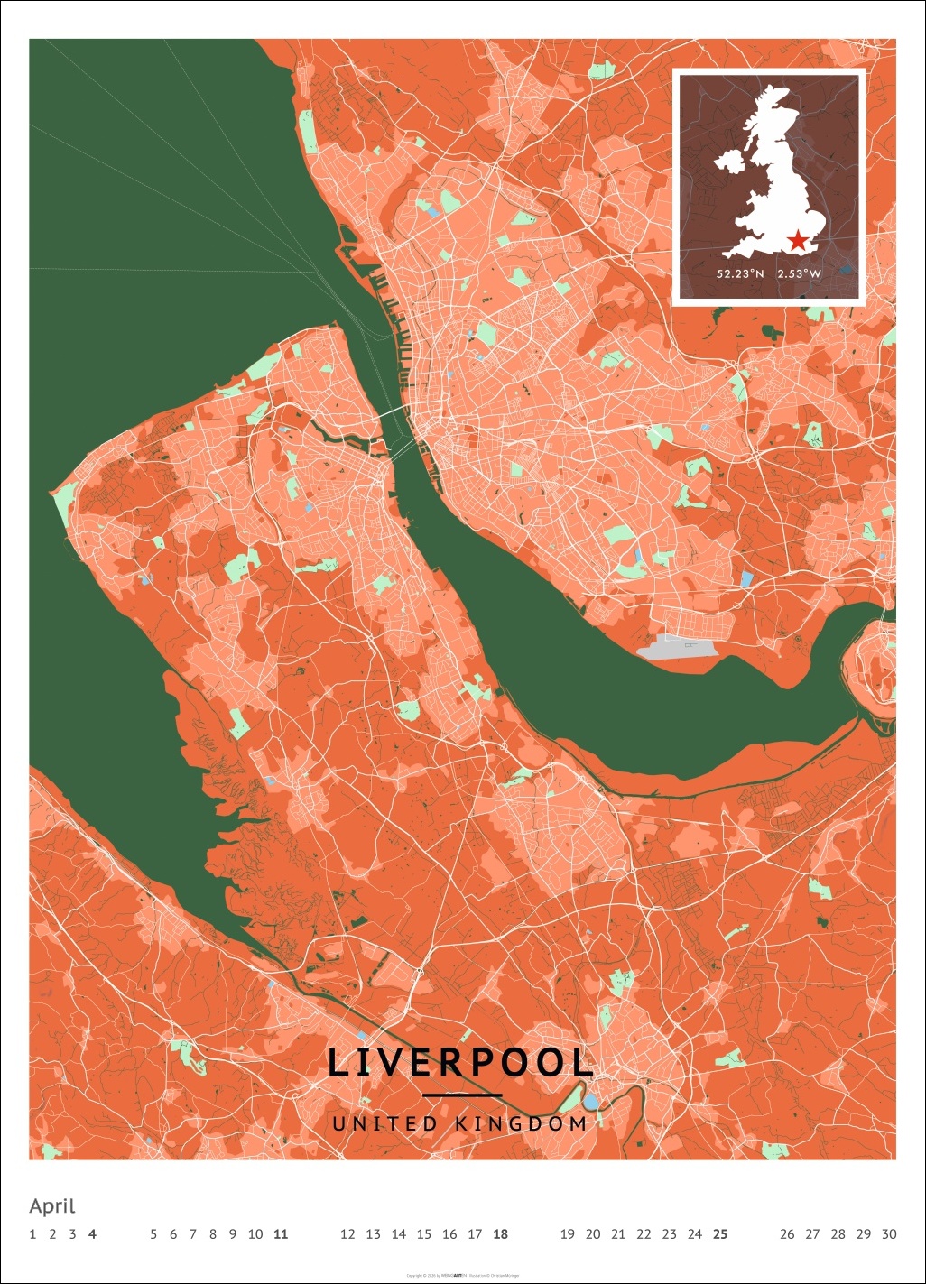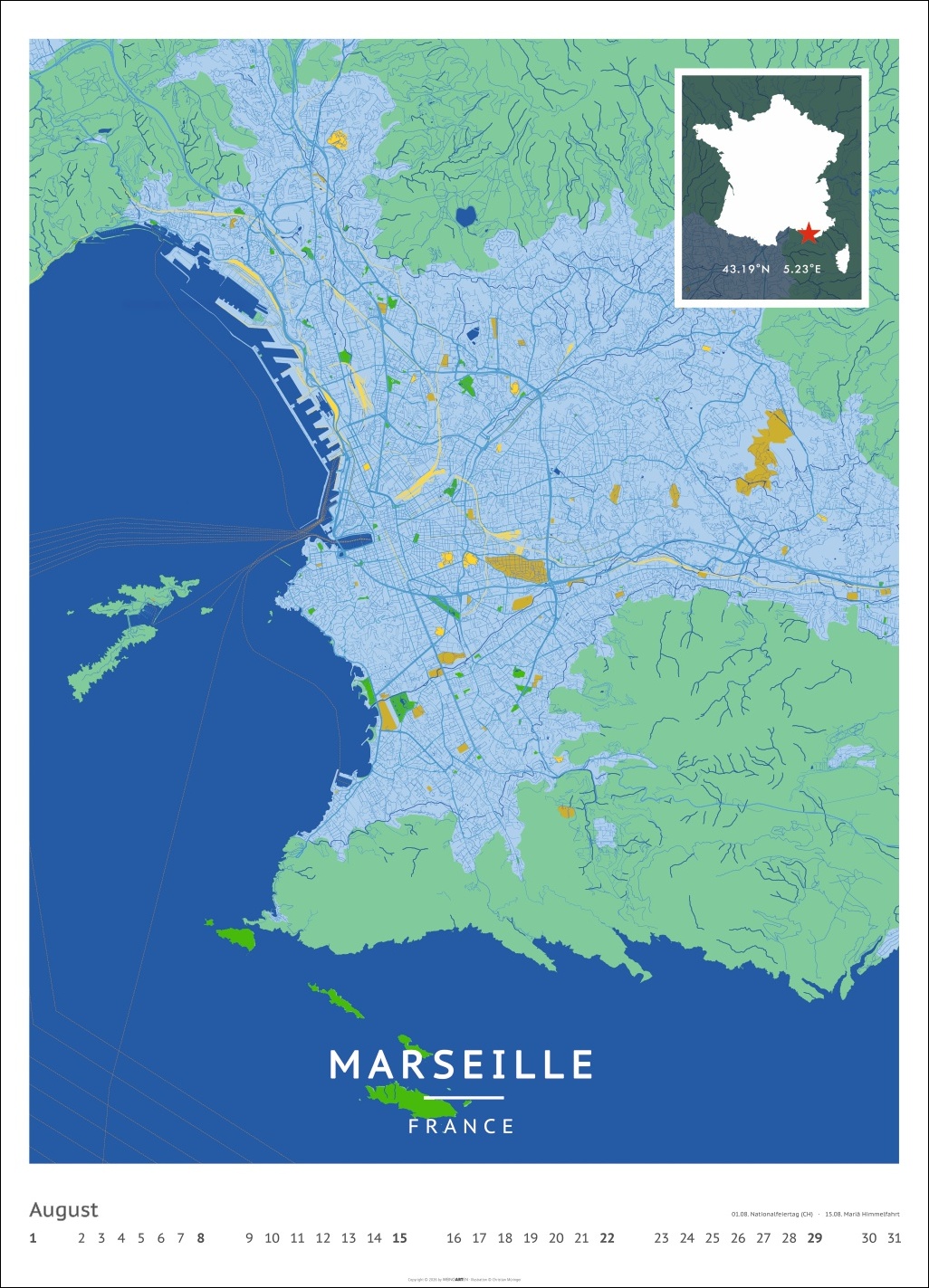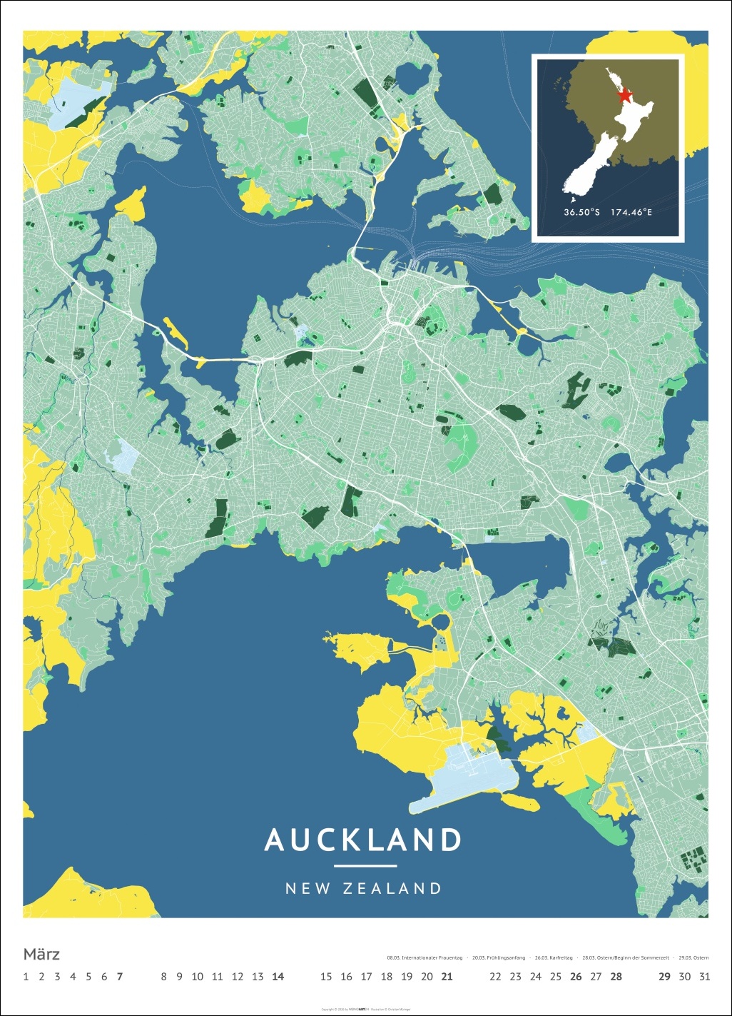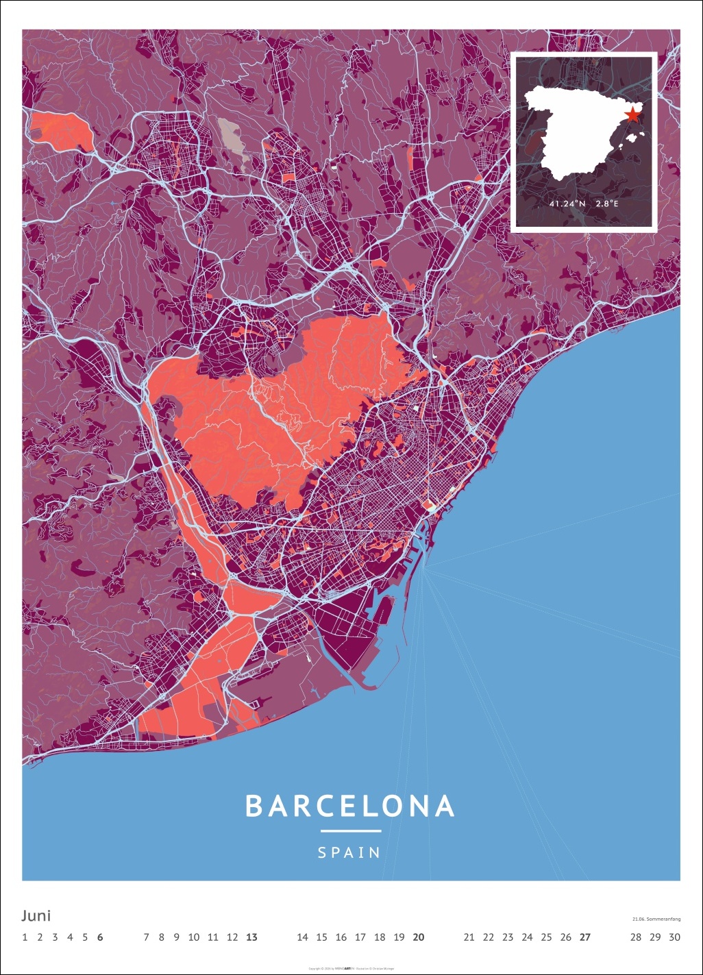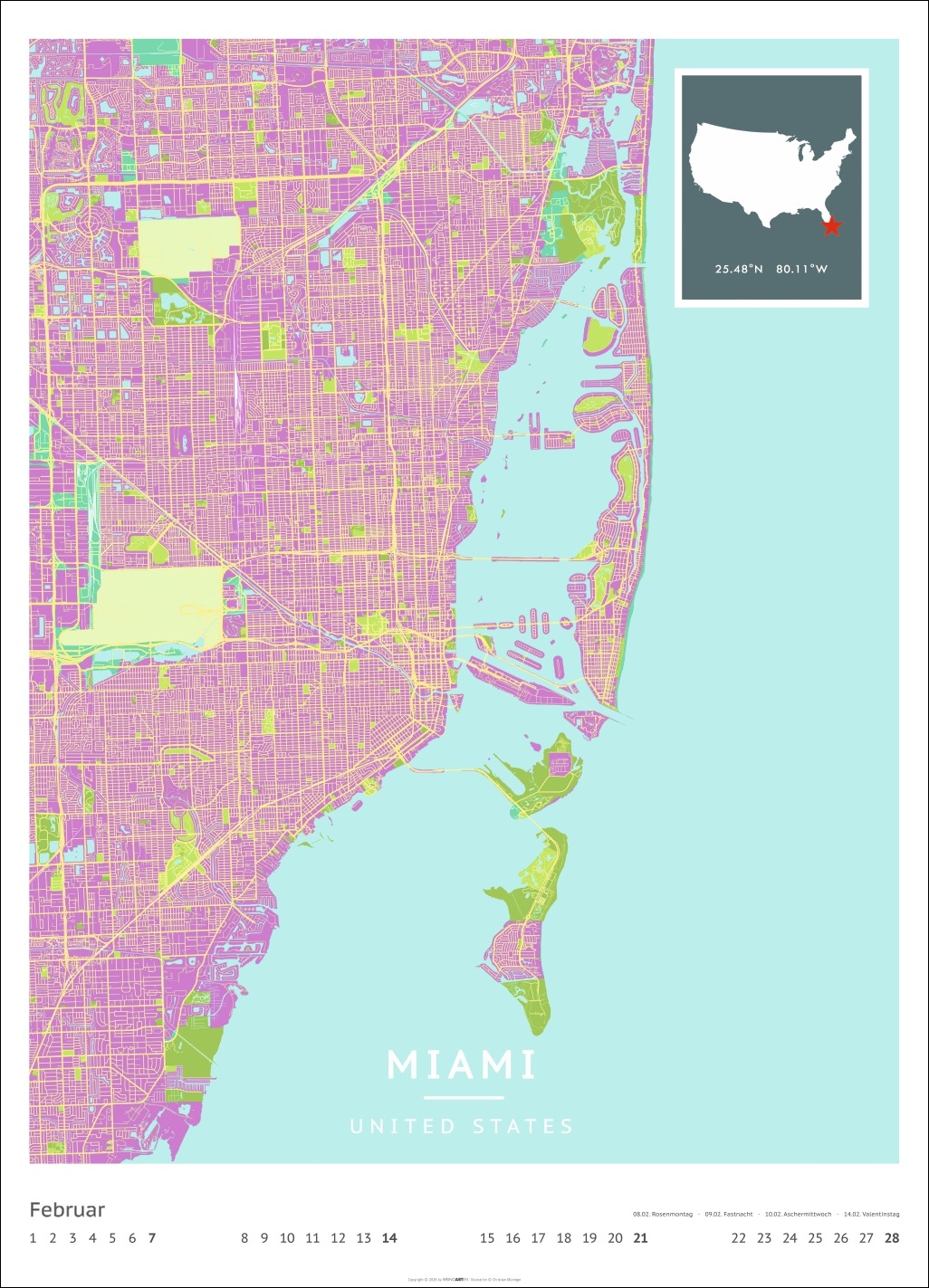 • Für alle Liebhaber von moderner Kartenkunst und ausgefallenen Interior-Ideen: Großer Wandkalender mit Farbkontrasten als Eye-Catcher