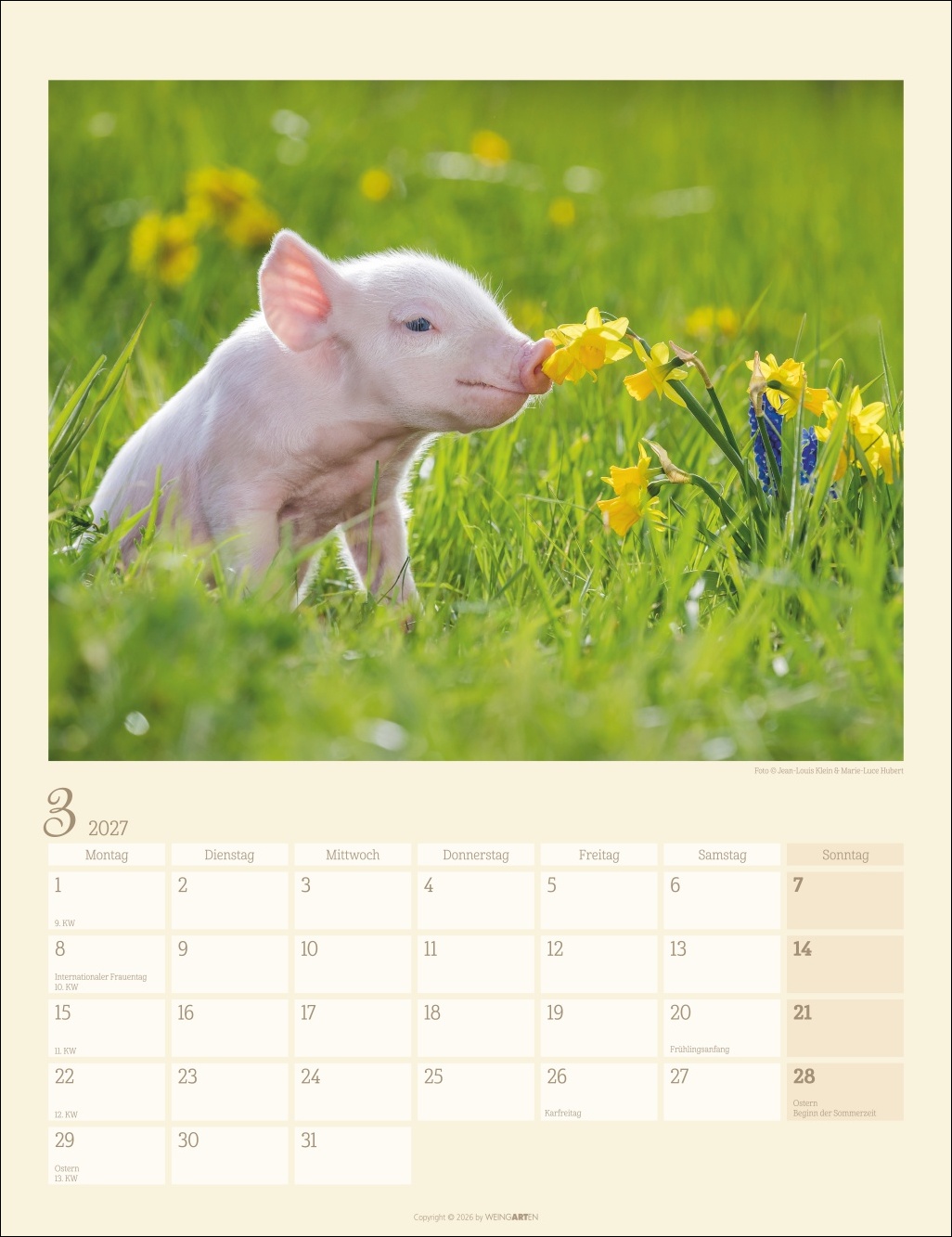 • Grunz-vergnügt: der Fotokalender 2027 mit glücklichen Schweinen im Format 30 x 39 cm