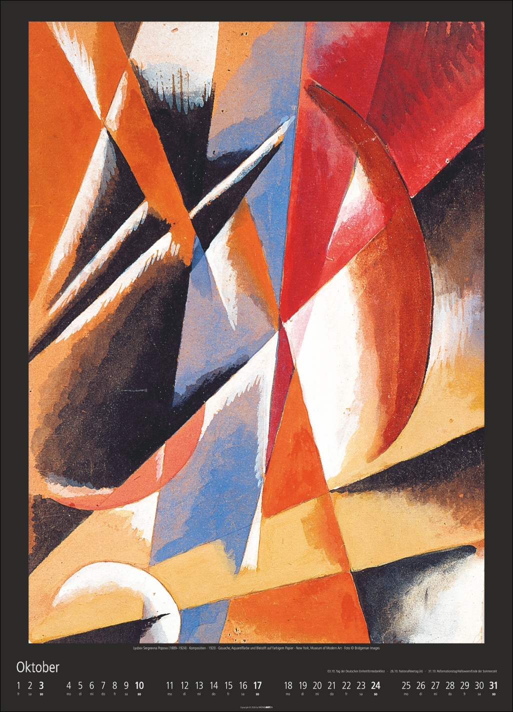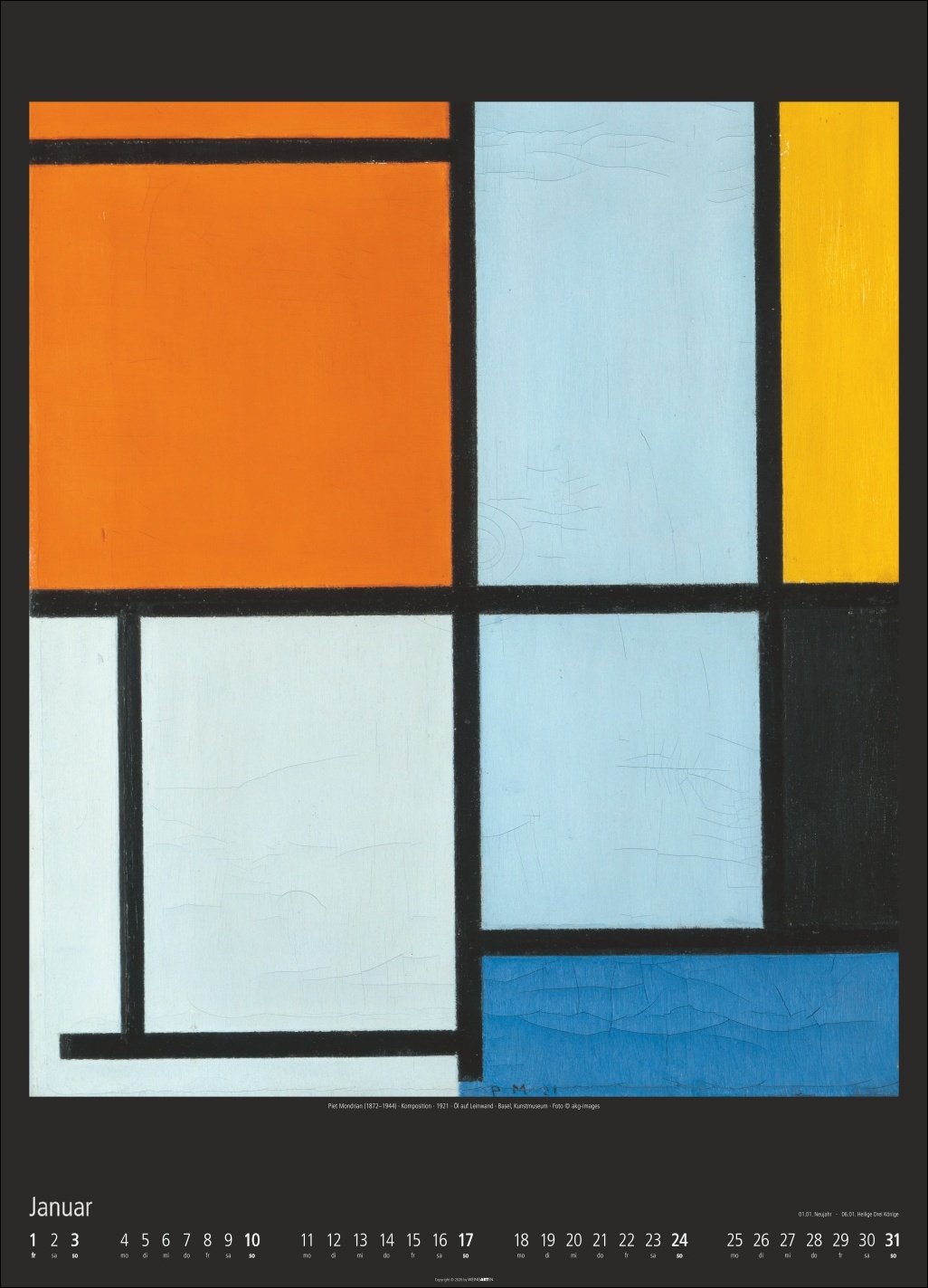 - Auf Augenhöhe mit den großen Meistern des 20. Jahrhunderts: Kunstkalender im XXL-Format 49 x 68 cm mit Gemälden von Mondrian, Klee, Oskar Schlemmer und anderen